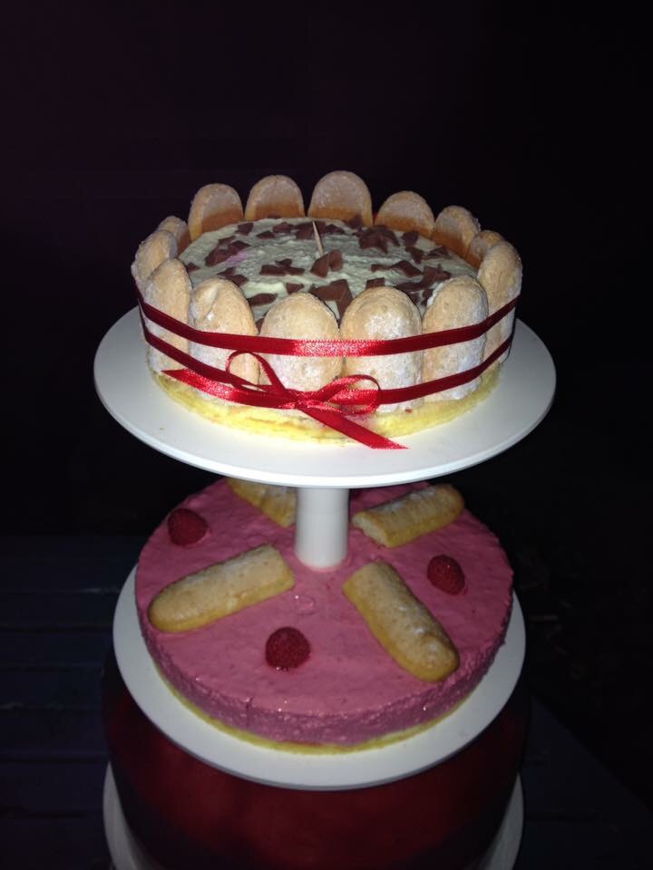 Mousse bavaroise à la framboise garnies de biscuits cuillères