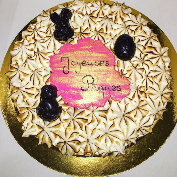 La base est une tarte Mojito à la crème menthe/citron vert avec une meringue italienne au rhum.