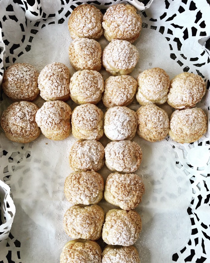 Choux au craquelin et crème mousseline au praliné maison. Réalisé pour un baptême
